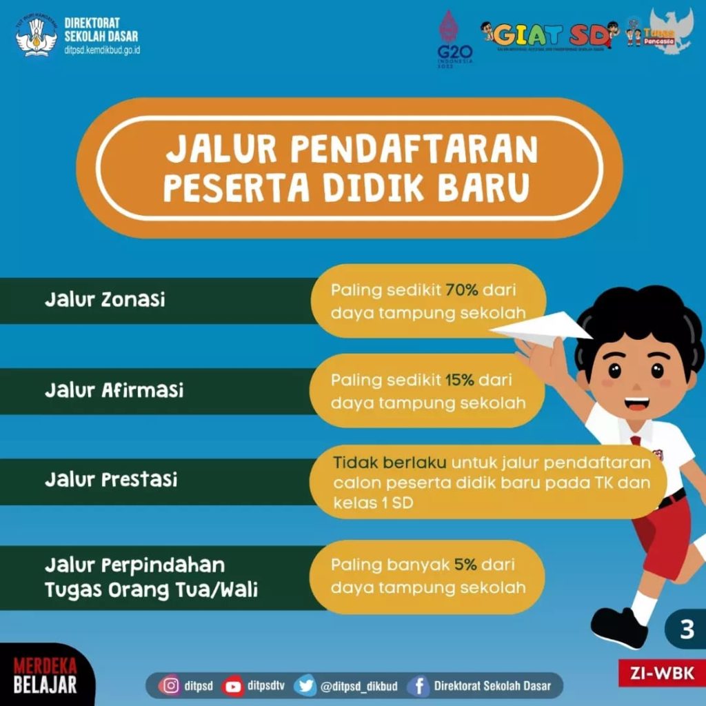 Selain itu, Bunda juga harus memperhatikan bahwa terdapat 3 jalur penerimaan Peserta Didik Baru (PPDB) SD 2024/2025 yang ditetapkan oleh Direktorat Sekolah Dasar Kemdikbud RI.