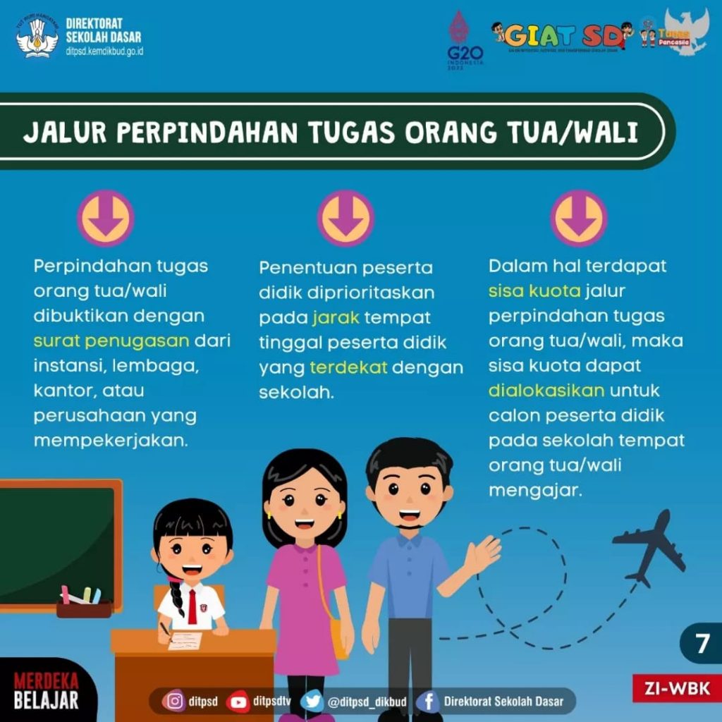 Jalut perpindahan tugas orang tua menyediakan kuota paling banyak 5% dari daya tampung sekolah sekeluruhan. Hal-hal yang harus Bunda perhatikan jika ingin memasukkan anak ke sekolah dasar melalui jalur perpindahan tugas orang tau atau wali: